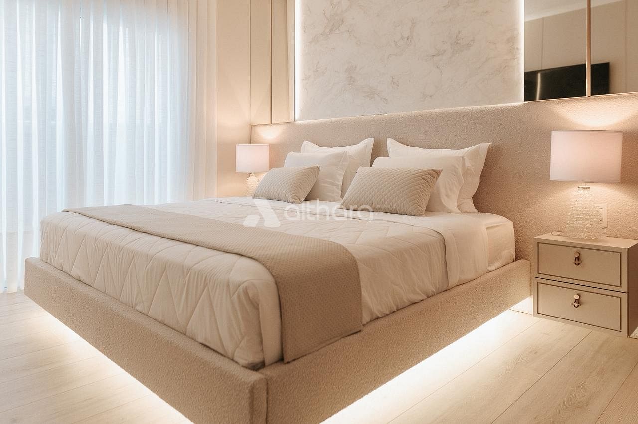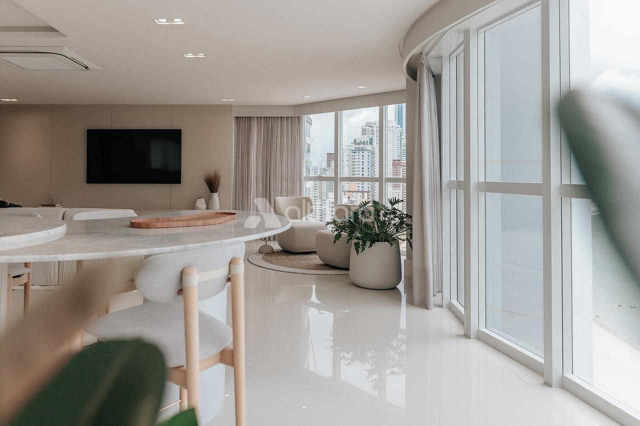 Os apartamentos reforçam o alto padrão do empreendimento, com uma unidade por andar, garantindo total privacidade. São 237 m² de área privativa, com quatro suítes bem distribuídas. A suíte master, com 42 m², proporciona uma experiência única: da sala de banho é possível contemplar o rio, enquanto da cama se aprecia a vista para o mar. Conta ainda com sacada e um closet acima do padrão. As demais suítes mantêm o equilíbrio em conforto e metragem, e a planta flexível permite diferentes possibilidades de personalização, adaptando-se perfeitamente ao estilo de vida de cada família.