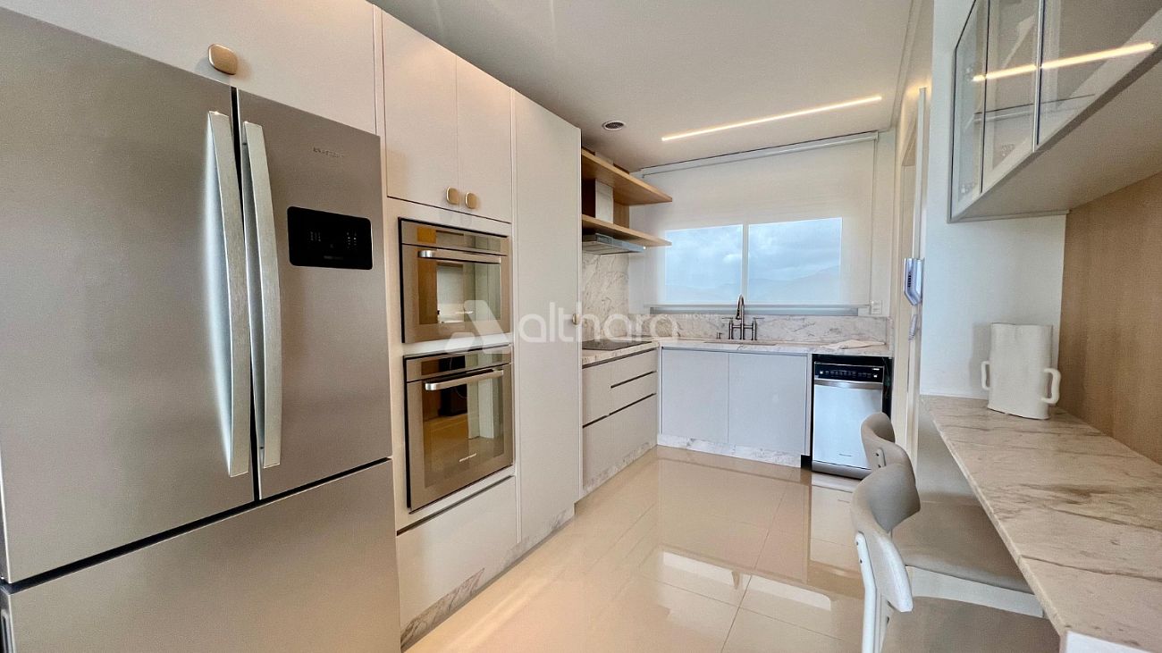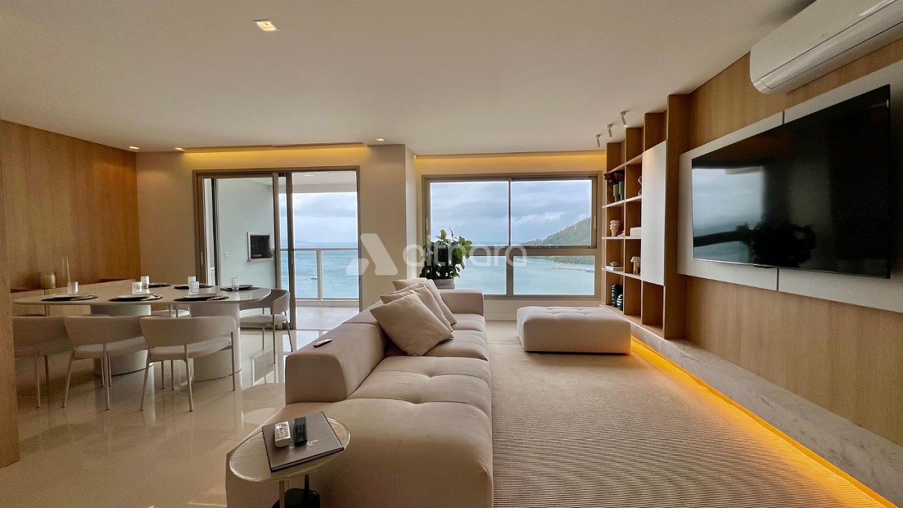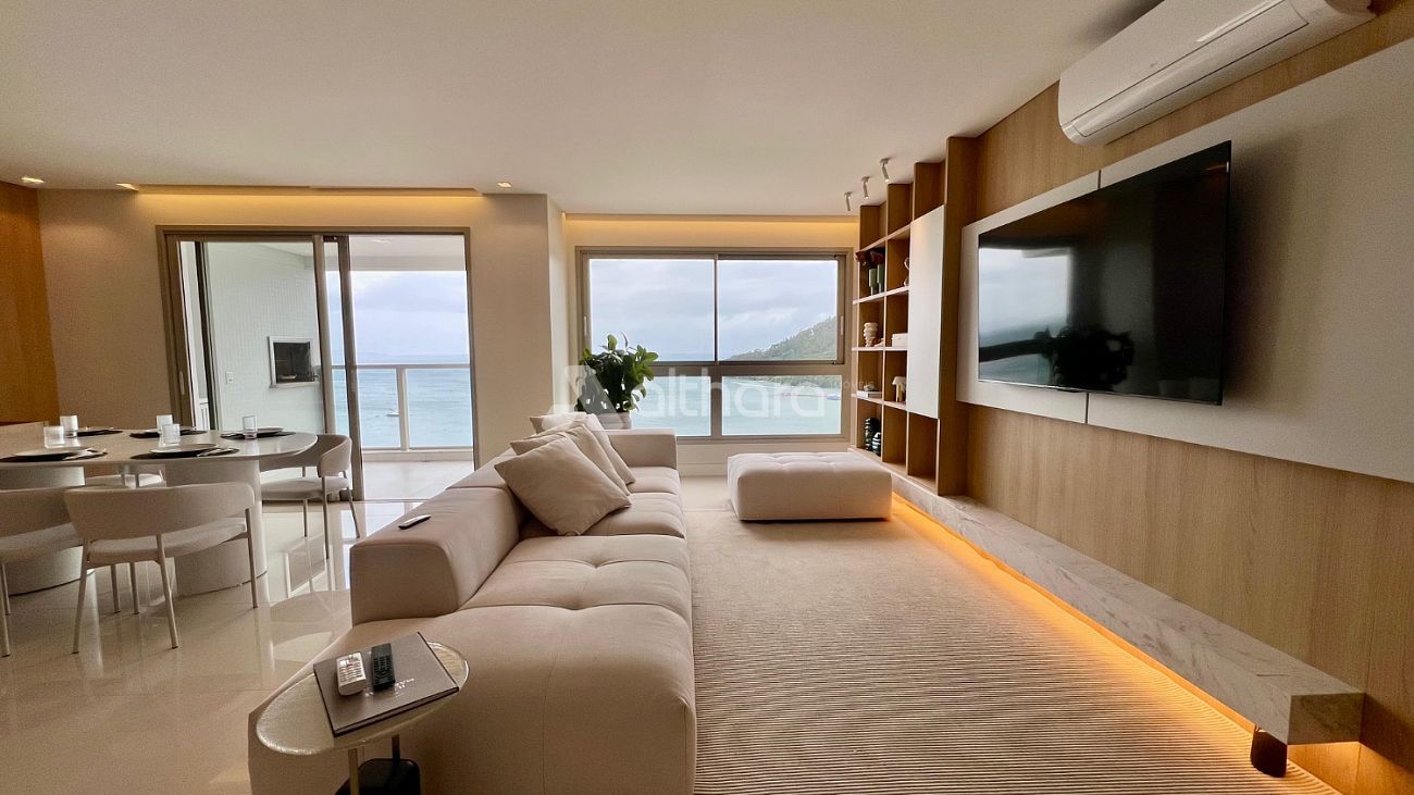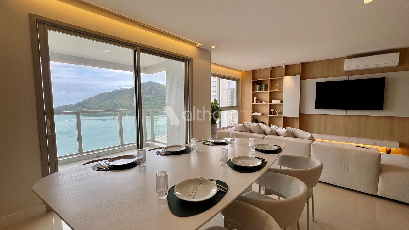 PRONTO PARA MORAR MOBILIADO E DECORADO - Apartamento 160,41m² com 04 suítes, living integrado, sala de estar, sala de jantar, cozinha, lavabo, sacada aberta com churrasqueira a carvao, linda vista mar, área de serviço, banheiro de serviço e 03 vagas de garagem.